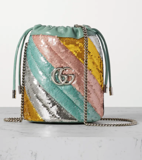 GG Marmont mini quilted sequined leather bucket bag, net-a-porter.com