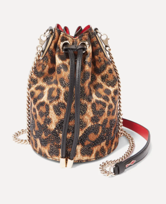 Marie Jane embellished leopard-print Lurex and leather bucket bag, net-a-porter.com